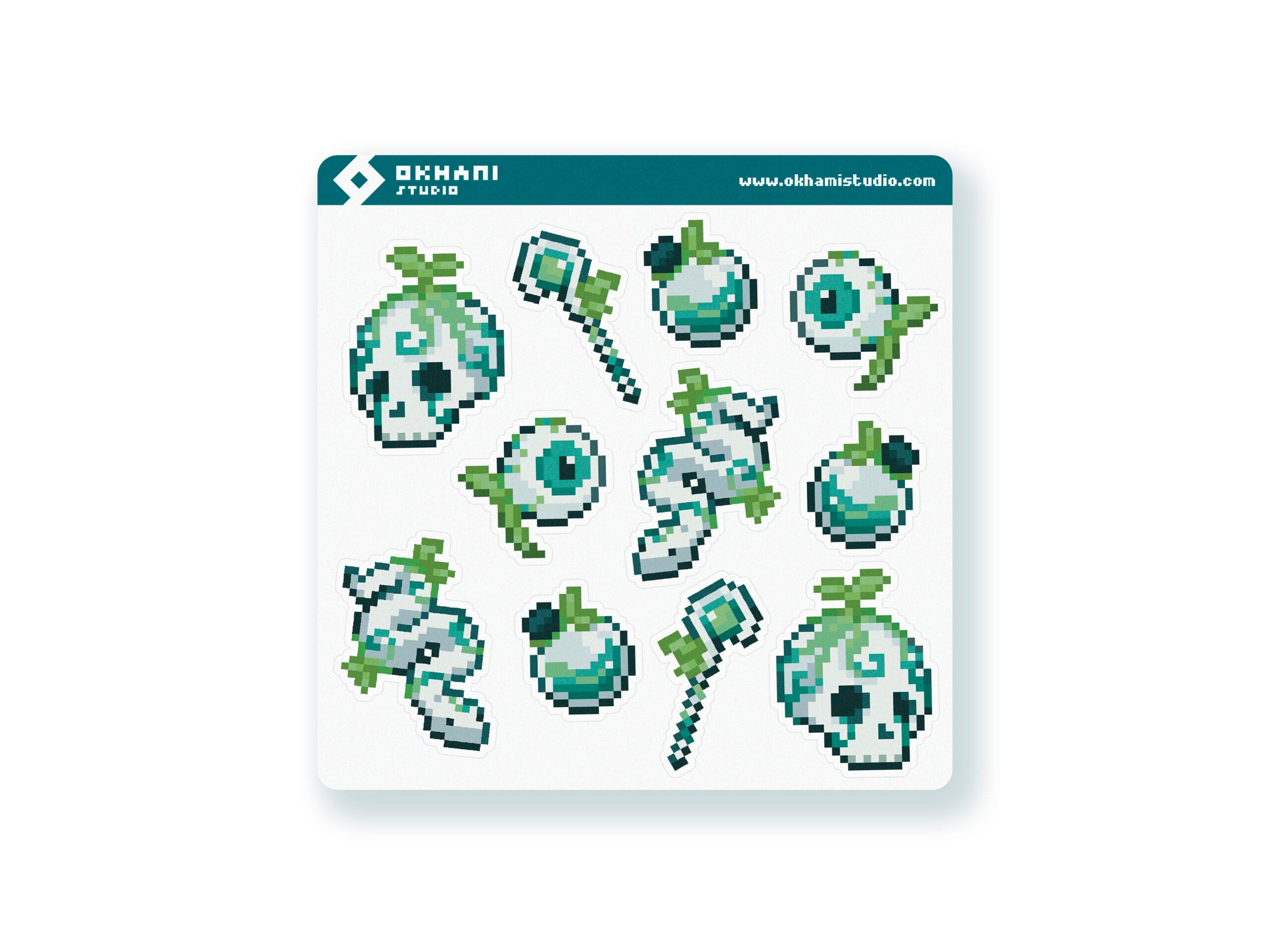 Inicio Papelería Hojas de pegatinas Hoja de pegatinas de jungla maldita pixel art