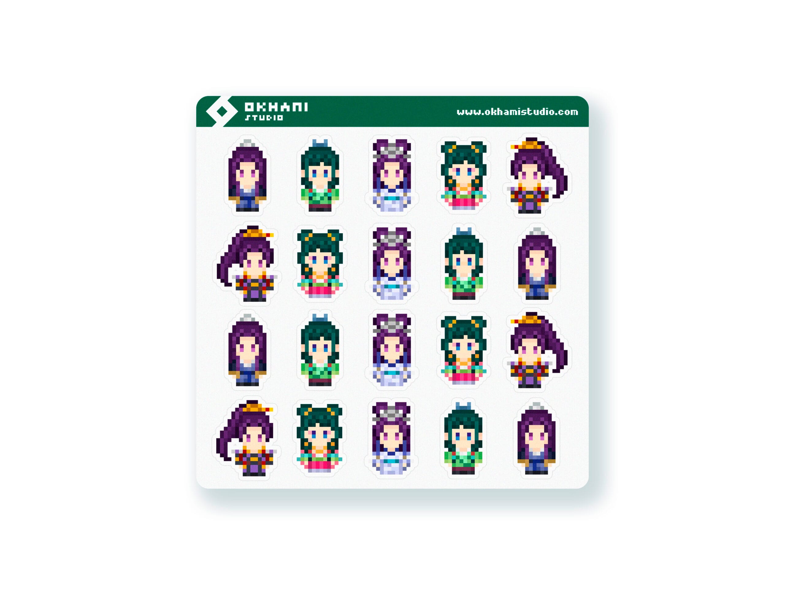 Hoja de pegatinas Jinshi y Maomao pixel art - Imagen 1